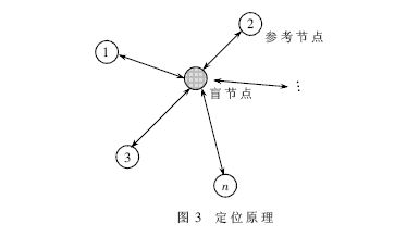 无线定位是本系统的一个独特点,它支持迷路用户进行报警和寻找特定用户位置。其原理根据各节点之间接收信号强度检测RSSI(Received Signal Strength Indicator)实现。这里,该协议栈已将其最大值量化为150。如图3,设盲节点是需要确认位置的用户,参考节点1,2,…,n为已知位置信息的节点。由于已知节点之间的RSSI值已知,通过计算盲节点到参考节点的RSSI值,建立联合方程,就可以推导出盲节点的大致位置。这样,当盲节点需要确认位置(例如用户迷路)时,可以发一个特殊命令,并迅速反馈给主控系统,主控系统确认出它的大致位置,就可以及时搜求。主控系统也可以通过提供的用户地址信息,主动寻找失散人员。最近chipcom专门推出一款定位芯片CCS2431,它将射频芯片和8051内核集成,精度为3米左右。该定位方案不仅仅是对主控系统有用,对用户系统也有用。用户系统由于实时接收到不同位置的广播信号,在靠近最近景点时,它通过计算收到的最大RSSI信号进行判决。如果达到预设门限值,就可以启动景点播放模式。