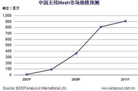 根据易观国际研究,随着无线城市的建设需求,中国无线Mesh市场从2008年起会得到迅速发展,至2011年的累计市场规模可超过20亿人民币。中国无线mesh市场规模发展如图3所示。