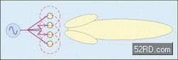 天线阵列的辐射图是每个单元辐射图的总和,每个单元的辐射图如图1所绘出的虚线圆所示。定向增益产生在这些单元之间的中线上。