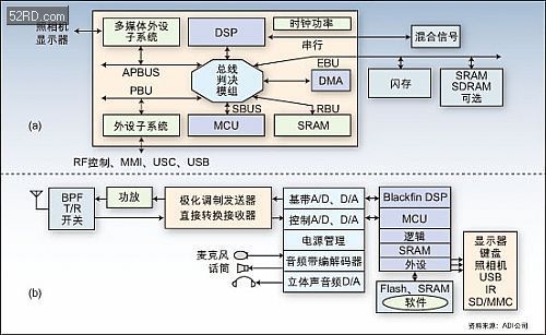 一些高端应用对手机功能提出越来越高的要求,包括从音频到视频以及基于图像的业务。在这些领域,性能取决于MCU内核资源:通常基于ARM7内核的解决方案是具有高度优化的通信平台,适合数据卡和入门级手机,但要求对多媒体功能要有硬件支持,采用专用的DSP内核或硬件加速支持音频/视频。
