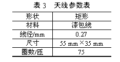射频模块所匹配的天线线圈的参数必须准确,否则读卡 性能达不到设计要求。制作天线时,必须用仪器测量其参数。这里提供一套与 RFM01匹配的天线参数,如表3所列。该线圈对钥匙型感应体的识别距离为80 mm,对卡片型感应体的识别距离为120 mm。