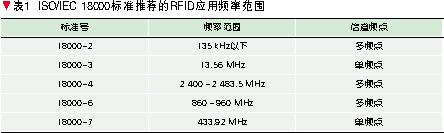 表1为国际标准ISO/IEC 18000标准系列中推荐RFID设备使用的频率范围