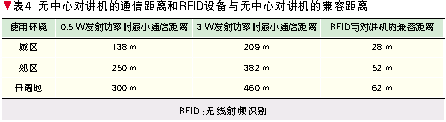 表4给出了由传播模型理论计算得到的在不同环境下距离RFID设备3 m处使用无中心对讲机的最大通信距离以及在完全保证无中心对讲机的最大通信距离时RFID设备与无中心对讲机的兼容距离。