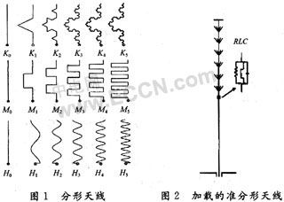 由于单纯的RLC加载对小型化天线设计具有局限性。在保证一定效率的前提下,要进一步减小单极子天线的尺寸,还需要做进一步的研究。其中弯折线天线和分形天线是适应设计发展的又一技术方法。如图1所示。