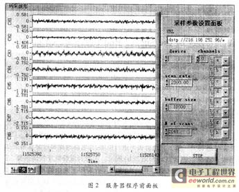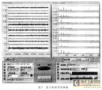 本系统的最大特色在于实现了设备的远程监测,可在客户机上在线设置数据采样率、每次所读数据点数等重要采样参数,取得和在服务器上设置同样的效果,非常方便的实现了终端控制功能,并对所采数据进行实时分析和处理。