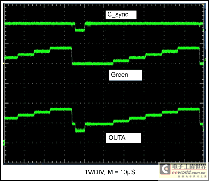 有些视频应用中,信号源输出RGB信号以及复合同步信号,RGB信号本身不包括视频同步。在接收器端,一些低成本视频解码器没有单独的复合同步输入,它们只接受视频信号本身的同步头。因此,在这种应用中需要把同步信号添加到绿色通道,提供一个“绿色同步”电路。