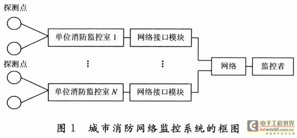 建设城市互联网消防监控系统是一个系统工程。由于它涉及城市的各个单位、消防管理部门以及互联网技术提供商,因此它是一个复杂的工程。然而一旦它运转起来,带来的社会效益无疑是巨大的,图1为城市消防网络监控系统的示意图。