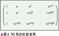 图3所示是RS码的校验矩阵。RS码从最佳的冗余特性出发。达到Singleton界的RS码被人们提出并广泛应用。