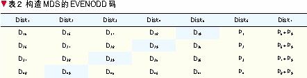 也就是说当第一辅对角校验和为1时,其他各对角校验为奇校验;当第一辅对角校验和为0时,其他各对角校验为偶校验。这就是它被命名为EVENODD码的原因。
