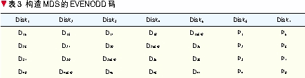 设存储用户数据盘的数目为p(如上例中p=5),则系统包含p+2块磁盘,前p+1块磁盘中的最后一个单元为虚拟0元,故每盘实际包含p-1个单元,最后一块磁盘包含p个单元。可以证明,当p为素数时系统是双容错的。