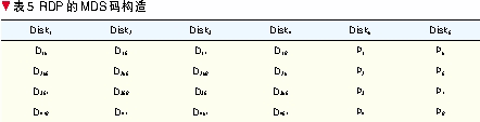 同样的,RDP的最后一个校验盘多出一个单元,使得整个系统不为MDS码。但RDP码的优势在于,简单地将多出的单元删去,系统仍然为双容错的。即得到如表5所示阵列。