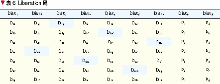 多维阵列或FULL码等二进制线性码每块磁盘只取一个逻辑单元进行校验运算。而阵列码则在每块磁盘上取多个逻辑单元,一起交叉进行校验运算。校验计算同2进制线性码一样,只使用二进制异或运算,但冗余度却可以与RS码相同。
