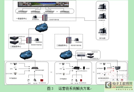 图3为256视频点以上的大型工程项目提供的系统解决方案,该系统可根据需求采用单级或多级平台级联构架。该方案采用端到端全网络化解决方案,系统的部署简单、快速,维护便捷。兼容丰富的系列化前端,可以根据不同的监控点实际应用需求提供针对性的前端部署。支持视音频看、存、查、控,支持中心防控,报警联动,支持可视对讲。存储高可靠更灵活,支持中心存储、前端存储、客户端存储相结合,可实现高效集中管理。适用于平安城市社会治安监控、企业安防监控、安全生产监督、平安校园、电子考场、宝宝在线、医疗安防监控、远程探视、手术示教、远程医疗、银行安防监控、数字化监狱、道路监控等不同的场合。