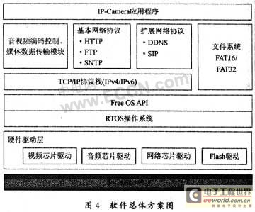 TCP/IP协议栈为双协议栈,不仅支持现有的IPv4协议,而且能够支持下一代的互联网协议IPv6;提供HTTP Server功能,用户可能通过IE访问IP-Camera,进行媒体播放、查看和设置参数;提供FTP功能,便于用户传输文件,进行程序升级;提供SNTP功能,保证IP-Camera的时间能与标准时间服务器同步;提供DDNS功能,能够让用户通过动态域名方式访问IP-Camera;提供SIP功能,使得IP-Camera能够与SIP电话通信,使得视频监控更加便捷灵活;媒体数据传输采用RTP协议,保证图像的实时性;文件系统支持FAT16和FAT32格式。