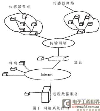 传感器网络系统通常包括传感器节点、汇聚节点和管理节点。大量的传感器节点随机部署在监测区域内部或附近,能够通过自组织方式组成网络。各个传感器节点监测的数据沿着其他传感器节点进行逐跳传输,经过多跳后路由到汇聚节点。用户通过管理节点对传感器网络进行配置和管理,发布监测任务以及收集监测信息。各个节点协作完成监测任务。