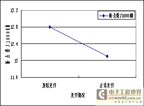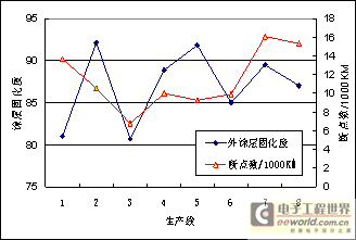 根据上图所示,当涂层的同心度小于8时,每1000KM光纤的断点数在10左右,在筛选中不会对光纤强度造成太大影响影响。而当光纤同心度达为10时,断点数为15.5。因此,光纤的同心度小于8,可以有效地减少因涂层偏心而引起光纤强度的降低。