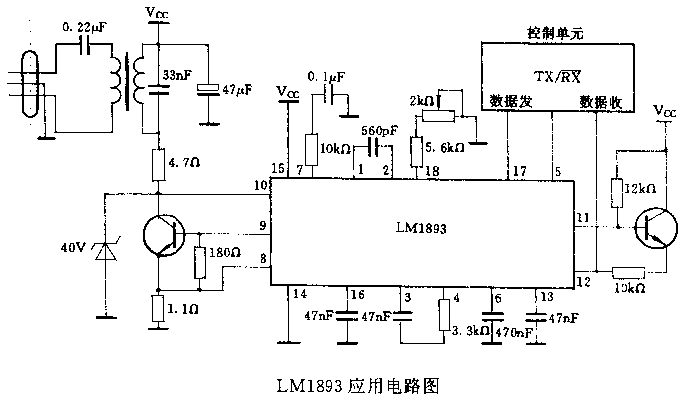 LM1893是美国NS公司生产的电力线载波通信集成电路。可完成串行数据的半双工通信,具有发送和接收数据的全部功能,与控制器及一些外围元件可构成完整的电力线载波通信系统。应用该芯片构成的系统比分立元件构成的系统具有灵敏度高、抗干扰的优点。