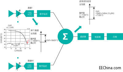 对整个超声系统进行优化,以支持新器件改善了的SNR,包括数字波束成形器(数字延迟和求和)、数字滤波器、检波器以及压缩映射,如图4所示的超声接收器方框简图。