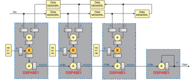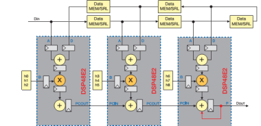 在任何DFE应用中,线性滤波器都是最常用的处理单元。在赛灵思 FPGA上集成此项功能后,建议[6]尽可能实现多通道滤波器,因为它的复合采样率(定义为通道数量与每条通道一般信号采样频率的乘积)与该设计运行所用的时钟速率相同。在所谓的并行架构中,每个DSP48 Slice根据数据通道支持单一滤波器系数,从而大幅简化了控制逻辑,并因此最大限度地降低设计资源利用率。