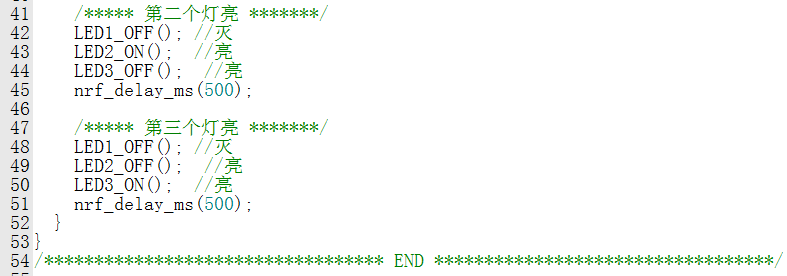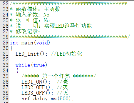 1.有了前面一节的基础,那下面就比较简单了,我们只需要编写主函数和LED外围接口函数即可。