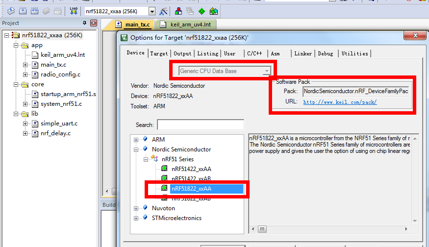 1.网上流传着有一个版本的MDK支持nRF51822,具体我没有测试,大家感兴趣的可以测试一下。