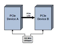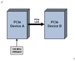 PCIe指定一个100 MHz的外部参考时钟(Refclk),精确度在± 300ppm以内,用于协调在两个PCIe设备间的数据传输。PCIe标准支持三种范围的时钟分配方案:公共时钟、数据时钟和分离时钟架构。所有时钟方案都要求±300ppm的相同的时钟精确度。