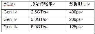 表1:PCIe Gen 1到III数据速率和数据眼UI的比较。