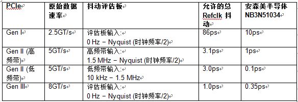 表2:PCIe规格抖动限制和PCIe时钟性能。