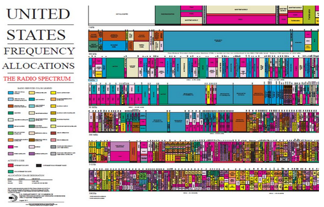 FCC 和其他国际组织一致认为,如果任由任何人随意使用任何频率,那么必然会导致绝对的混乱。因此,应为不同用户分配不同的频率范围。例如分别为 FM 无线电、AM 无线电、WiFi、移动电话、海事通信、空中交通管制、业余无线电、对讲机、军事通信、警用电台等应用分配不同频段。对了,我们还没提卫星或空间通信!这真是太乱了,幸亏有 FCC 帮助管理。如果您感到好奇,不妨用谷歌搜索一下,马上就能找到一个更详细的图表。