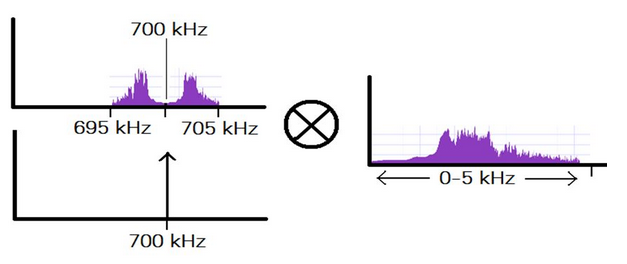 FCC 已为小范围的个人应用、业余爱好者的应用和其他常规“ISM 频段”应用(工业、科学、医疗)预留了部分频段。这就是 WiFi、对讲机、无线传感器和其他通信设备的工作频段。让我们再次讨论一下频率!人耳的听力范围为 20Hz 至 20kHz。如果我们的 AM 电台为 680kHz,那么无线电塔如何将声音变到该频率呢?它如何避免干扰到其他电台?接收机如何将信号频率转换回可听范围?