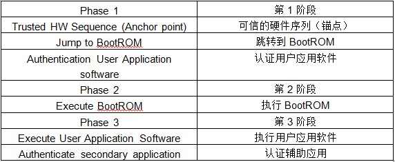 第1阶段表示执行硬件复位序列,以简化片上系统的上电。 此外,该序列传送对可信实体BootROM的控制。