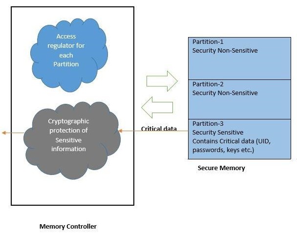 存储器可以划分为多个分区,每个分区都有一套不同的访问控制(图2)。根据分区中所存储数据的性质,该分区可以被指定为安全敏感或非敏感的分区。包含敏感数据的存储器也称为安全存储器。在存在安全漏洞(如篡改检测、ECC操纵等)的情况下,安全敏感分区的内容可能由控制器本身来擦除,同时非敏感分区的内容可能保持不变。此类存储控制器称为安全存储控制器。