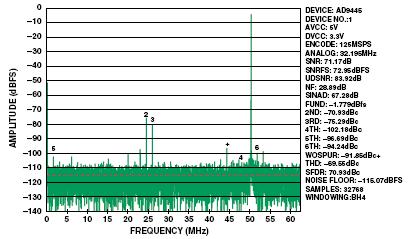 图3:AD9445的典型FFT曲线,125 MSPS,IF = 170 MHz