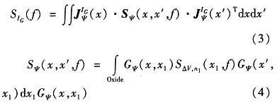 为与静电势ψ(y)相关的栅电流,IG的雅可比矩阵,Gψ(x,x1)为氧化层x1处的单位电荷在氧化层x处的电势ψ(x)的格林函数。 氧化层中的陷阱可发射载流子至沟道或从沟道中俘获载流子。对于近二氧化硅/多晶硅界面捕获的载流子,若其再发射,进入多晶硅栅,应用朗之万方程,假定产生几率不受再发射过程的影响,则单位体积内占据陷阱数量涨落的谱密度为