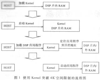 编程序的时侯使用符号作为地址,经编译、链接后,符号所表示的相对地址已经转化为绝对地址。要使程序能够正常运行,需要将程序代码写到指定的位置--绝对地址。在 HOST→Kernel→DSP应用的HPI自举方式中,HOST和Kernel需先后完成Kernel代码和DSP应用程序代码的定位工作。