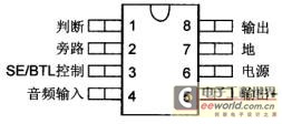 | SE/BTL转换 | 3 | 输入 | 当SE/BTL为低时,TPA711工作于BTL模式,反之,SE模式 |