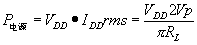 线性放大器的效率低,这主要是因于输出功率管上的管压降。首先是功率输出管上的直流压降和输出功率成反比,其次是由于正弦波本身的原因。管压降可由VDD减去输出电压的RMS(均方根值)值得到,管压降乘以电源电流的RMS,即可算出管耗。