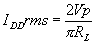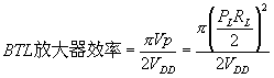 虽然流过BTL,SE功率负载的电压,电流都是正弦波,但是电源电流的波形是很不相同的。在SE模式下的电流波形是半波,而在BTL模式下是全波,这就意味着它们的波形因数(因子)不同,参见图7。利用下面的公式可以计算放大器的效率: