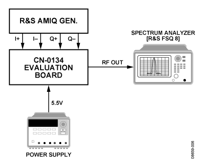 LO相位噪声和调制器的线性度是ACLR的主要影响因素。ACLR测试设置与EVM测试设置大致相同,只不过同轴滤波器位于AD9788 DAC板的I/Q输出端,以便减少混叠产物。