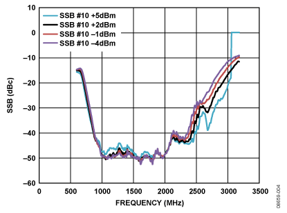 以差分方式驱动ADL5375 LO输入,除了可以改善边带抑制和EVM之外,还具有性能优势。与单端LO驱动相比,调制器OIP2性能可以提高2 dB至5 dB。请注意,多数外部VCO仅提供单端输出,因此ADF4350采用差分输出优于使用外部VCO。