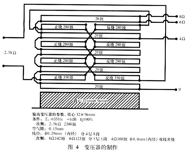 关于输出牛的具体设计步骤许多书上均有介绍,笔者在此就不再重复。变压器的制作如图4所示。