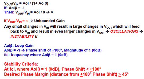 则VIN中任何小的变化都会导致VOUT中的很大变化,而这又会反馈给VIN并导致VOUT中更大的变化 → 振荡 → 不稳定!!