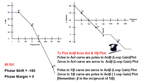 1/β 曲线上的极点为Aolβ(环路增益)曲线上零点