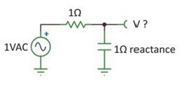 好的,我会告诉你伴随我41年的面试问题。用一个1V的交流源驱动一个1欧姆电阻和1欧姆电抗电容串联的电路。电容上的电压是多少呢?