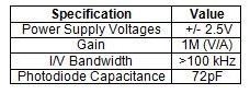 现在,我把这个过程运用在设计实例中,并对比采用两个运算放大器时的电路性能。一个运算放大器符合我们所计算的增益带宽要求,另一个不符合。该设计实例的要求如表 1 所示。