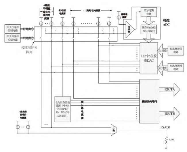 为了能够较好解决上述问题,我们可以采用校准技术,既能在保证电路高精度的同时减小电流源矩阵在DAC中所占的面积,又缓解了电路对版图和工艺的严格要求。因此,校准技术在保证DAC静态特性的同时能有效提高动态特性,同时还能降低电路对工艺、温度的敏感性,保证DAC长期稳定地工作。