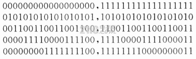 一般的March算法都是以位进行操作的,而被测对象是18位的数据通道,存储方式为字节存储,因此应该对March算法进行扩展。测试时不仅要考虑到字间故障,而且也应该考虑一个字内多个位之间的耦合故障。面对这种情况就应该增加March算法的测试数据。对于N位的存储器,共有log2N+1种测试数据,文献给出了数据背景的计算公式。被测对象有18位存储器,通过计算有5组测试数据: