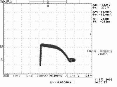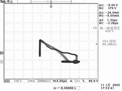 利用TDS3000系列示波器的XY显示模式,可以方便地重现MOSFET的开关轨迹线。利用这一功能,我们可以定量地了解回扫电路中MOSFET的开关情况,并为其吸收电路选择合理参数。这个方法也可以方便地应用到其他功率开关和电路拓扑中去。