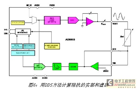 这里,传感器的反应通过快速的模数转换器和快速的傅立叶分析记录下来。采用DDS方法,初始的相位在任何时候都可精确地获知。用同样的方法,对其他频率的反应也可以测量出来。阻抗的实部和虚部可以据此计算出,并且通过数字总线输出。完全扫描仅需要几百毫秒。此图对该方法进行了说明。