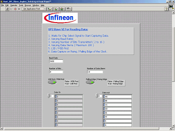 另一种解决方案涉及从SPI主机接收数据。作为从机SPI 的VI 可以从主机测试设备(DUT)中接收数据。SPI从机工作在不同的波特率和变化的数据比特下。用户可以配置VI,而其运行取决于测试设备(DUT)的主SPI的配置。